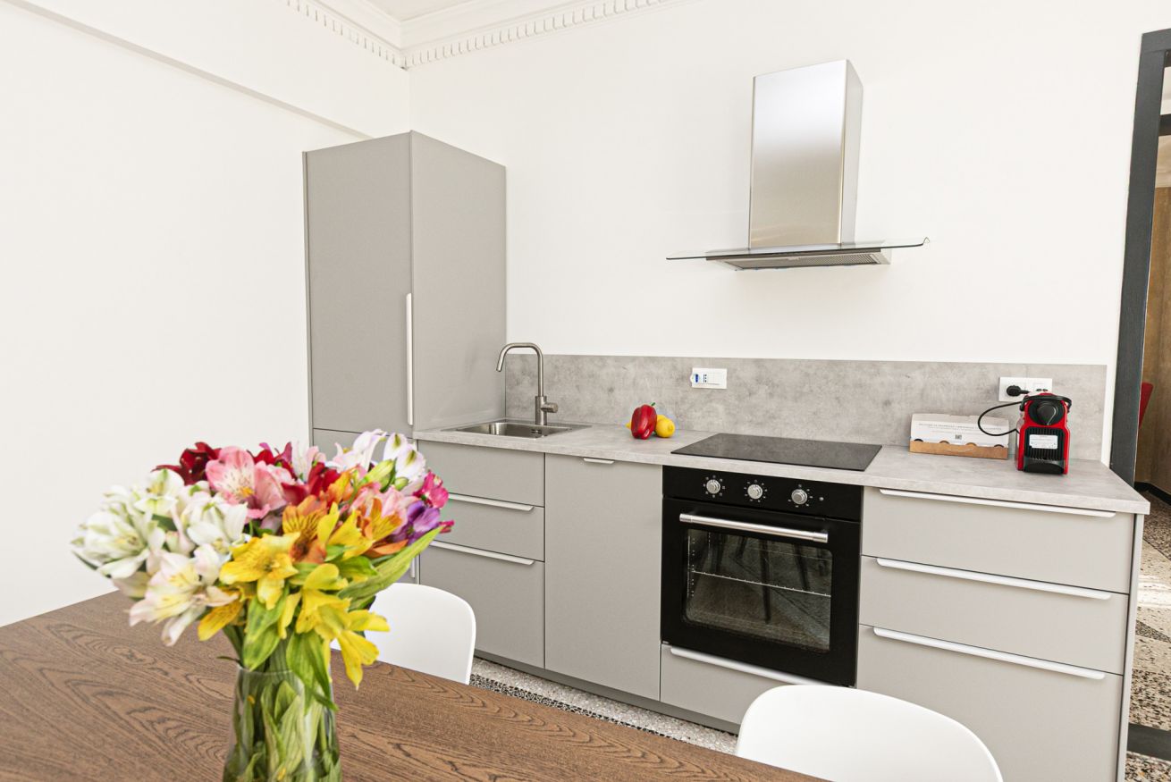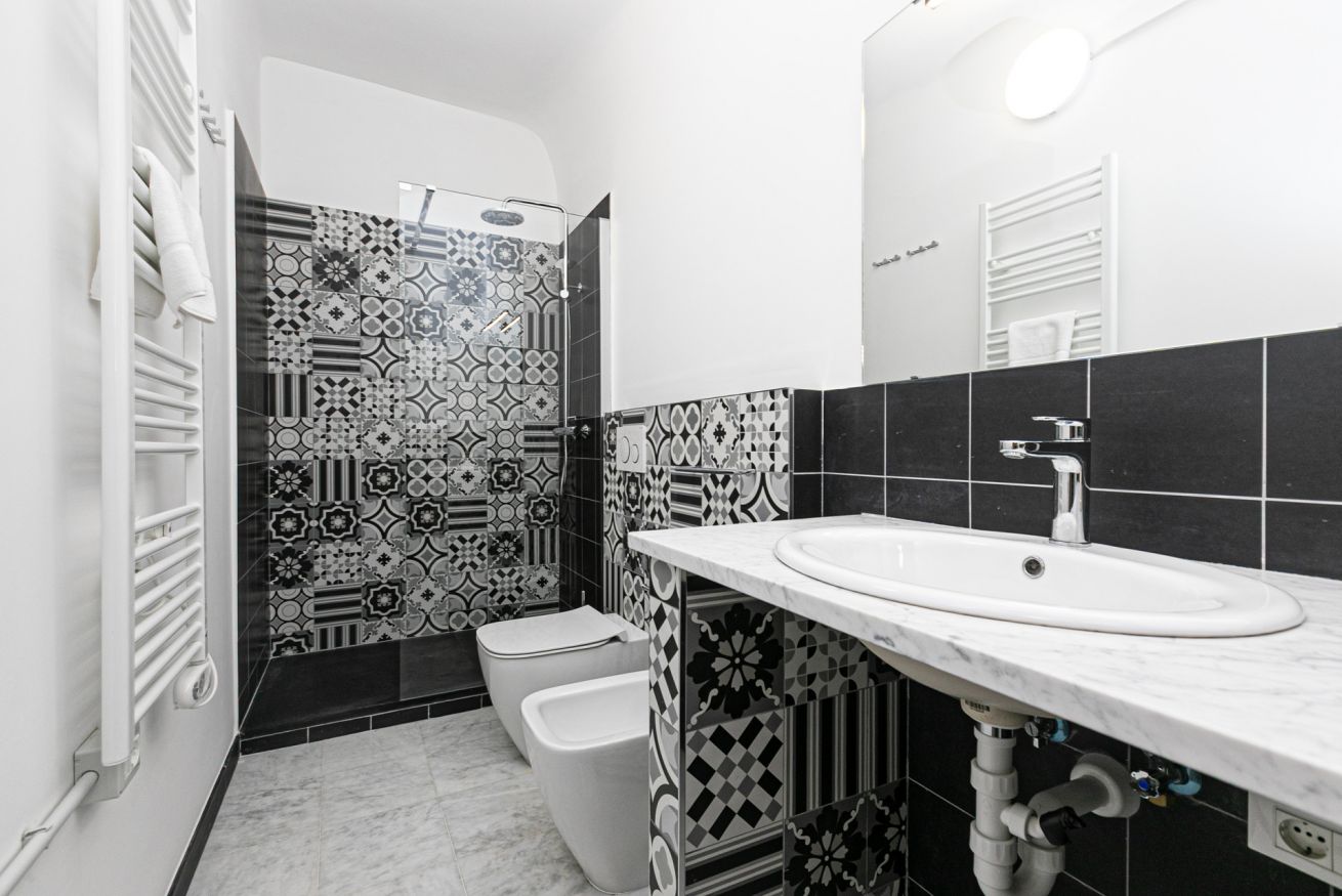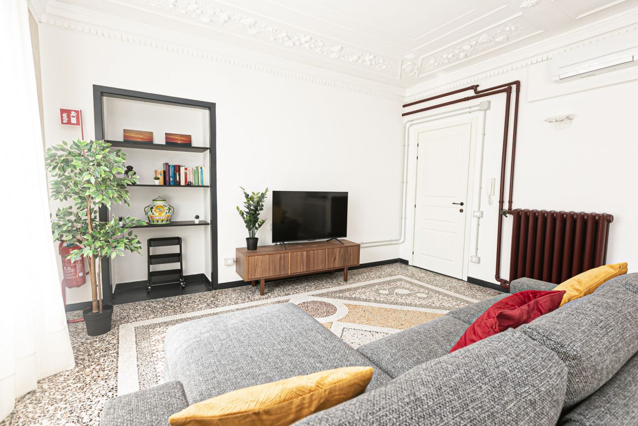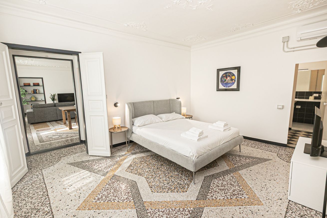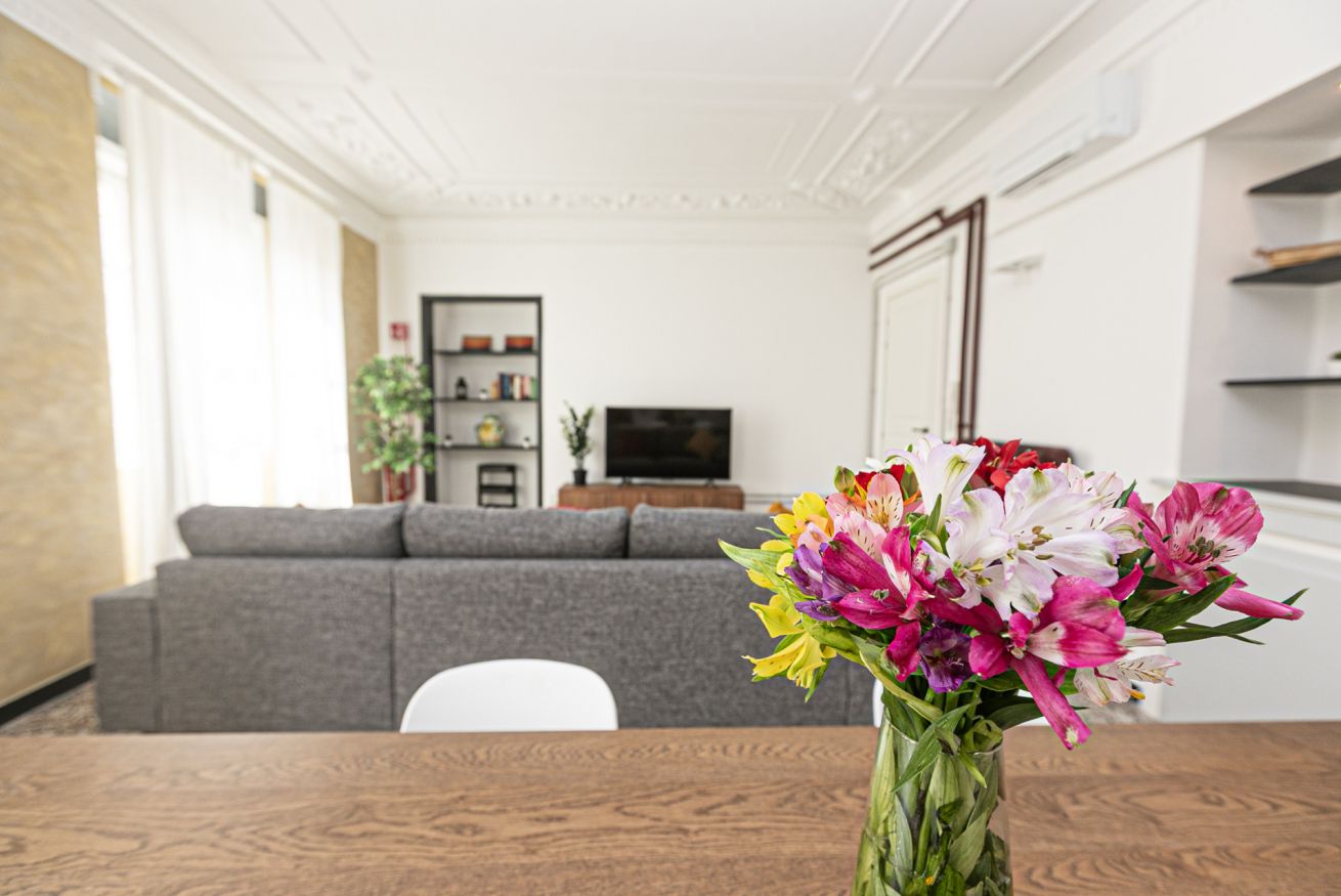 L'appartamento è caratterizzato da molti dettagli d'epoca. I soffitti sono decorati da meravigliosi stucchi e i pavimenti del salone e della camera sono costituiti da splendidi pavimenti in graniglia alla genovese. Si trova a pochi passi dall'Acquario di Genova, dal Porto Antico, dalla Cattedrale di San Lorenzo e dai principali luoghi di interesse della città.