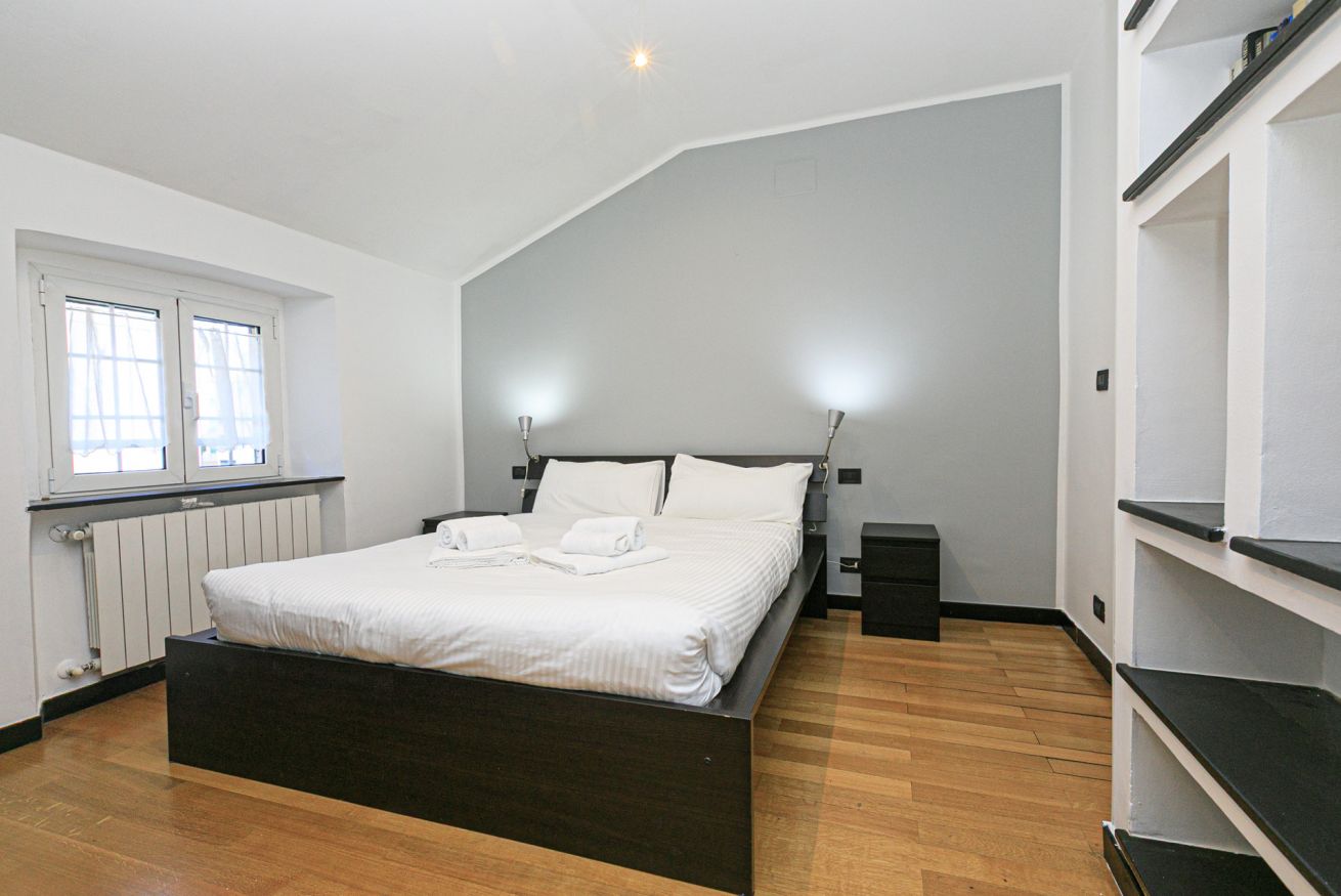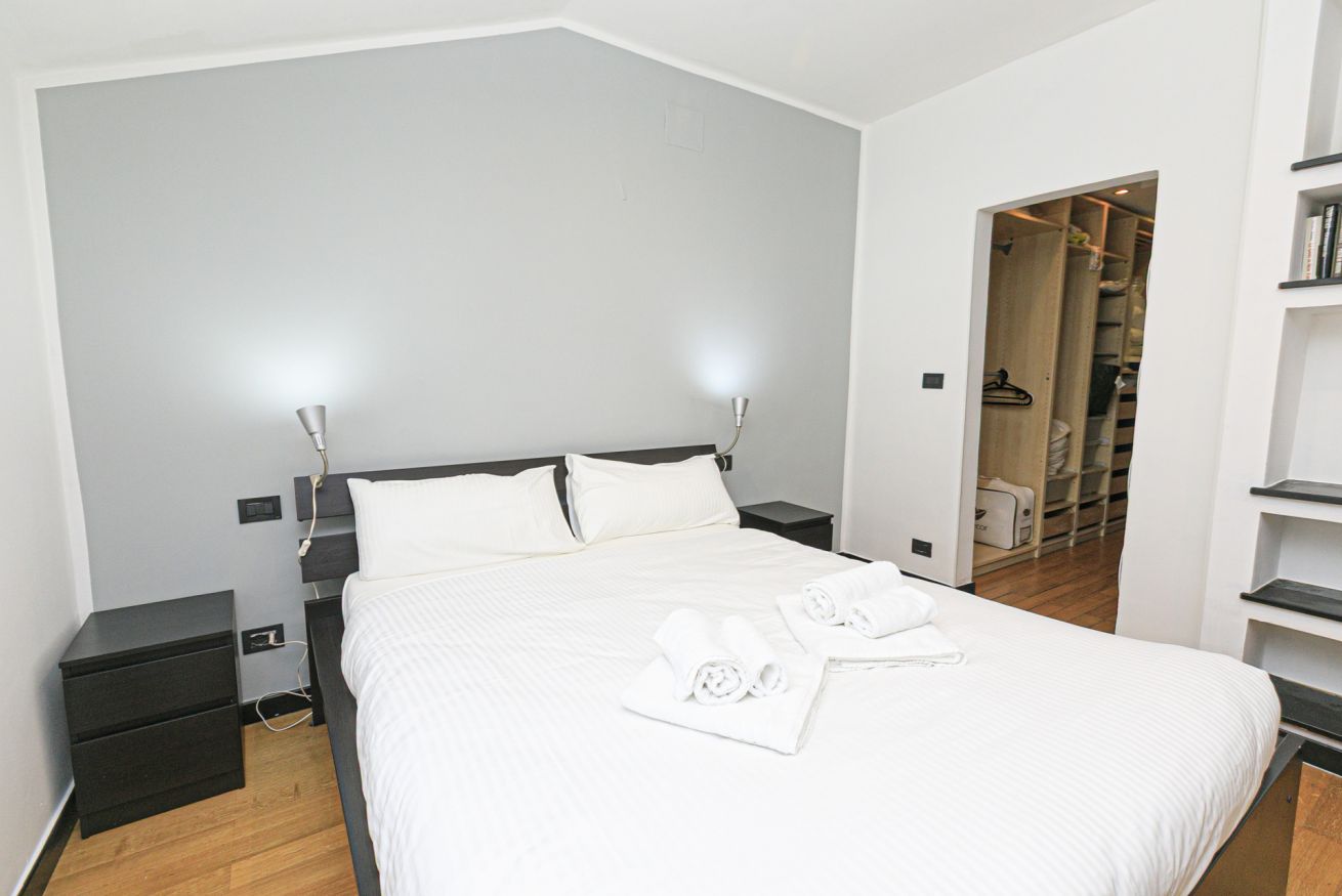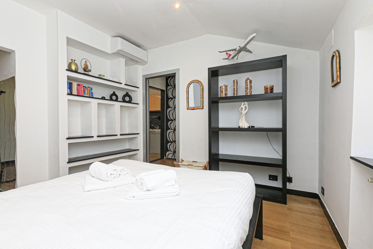 L'alloggio, recentemente ristrutturato, si compone di un luminosissimo soggiorno con divano letto e angolo cottura, una moderna camera con letto matrimoniale con un'ampia cabina armadio e un bagno con doccia.