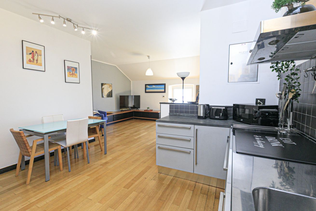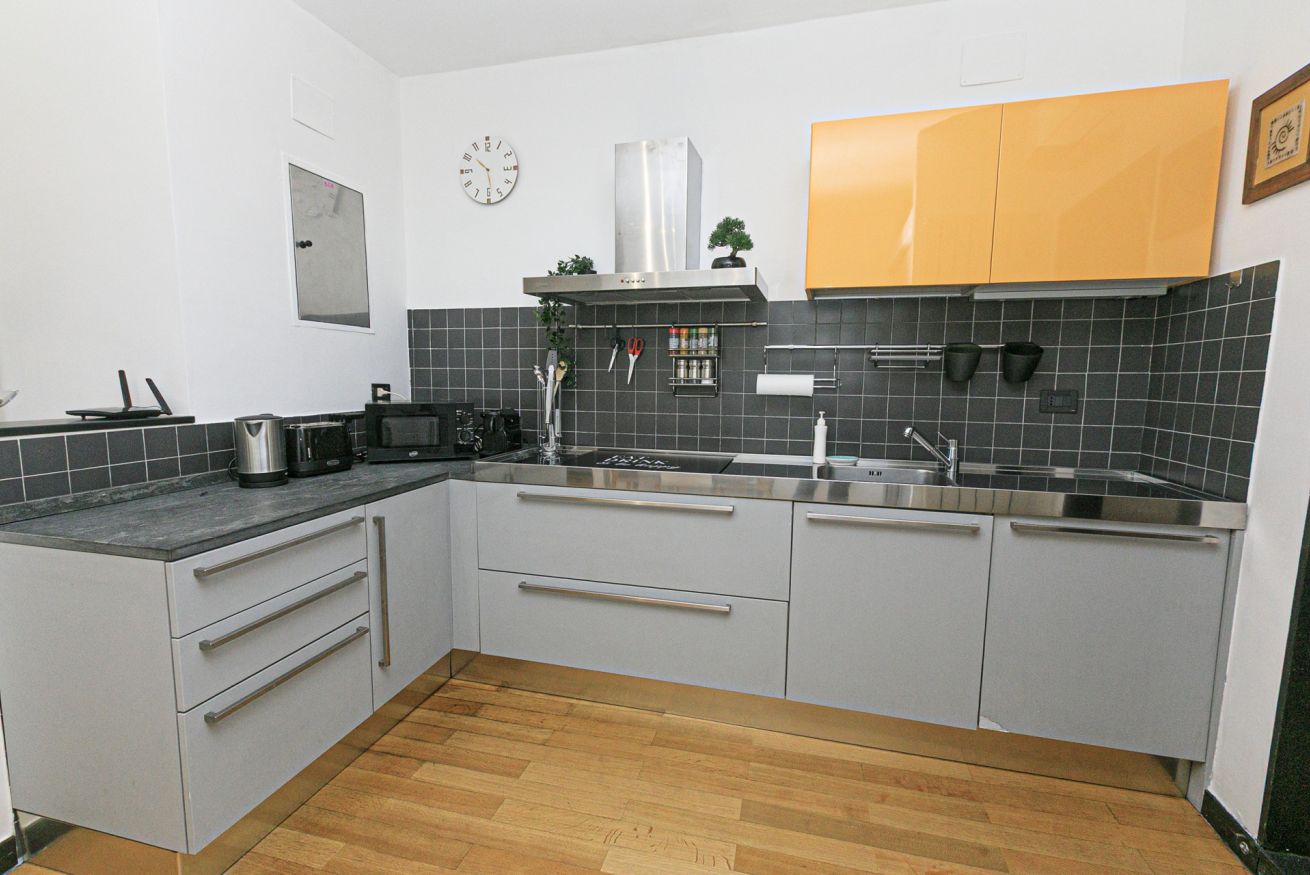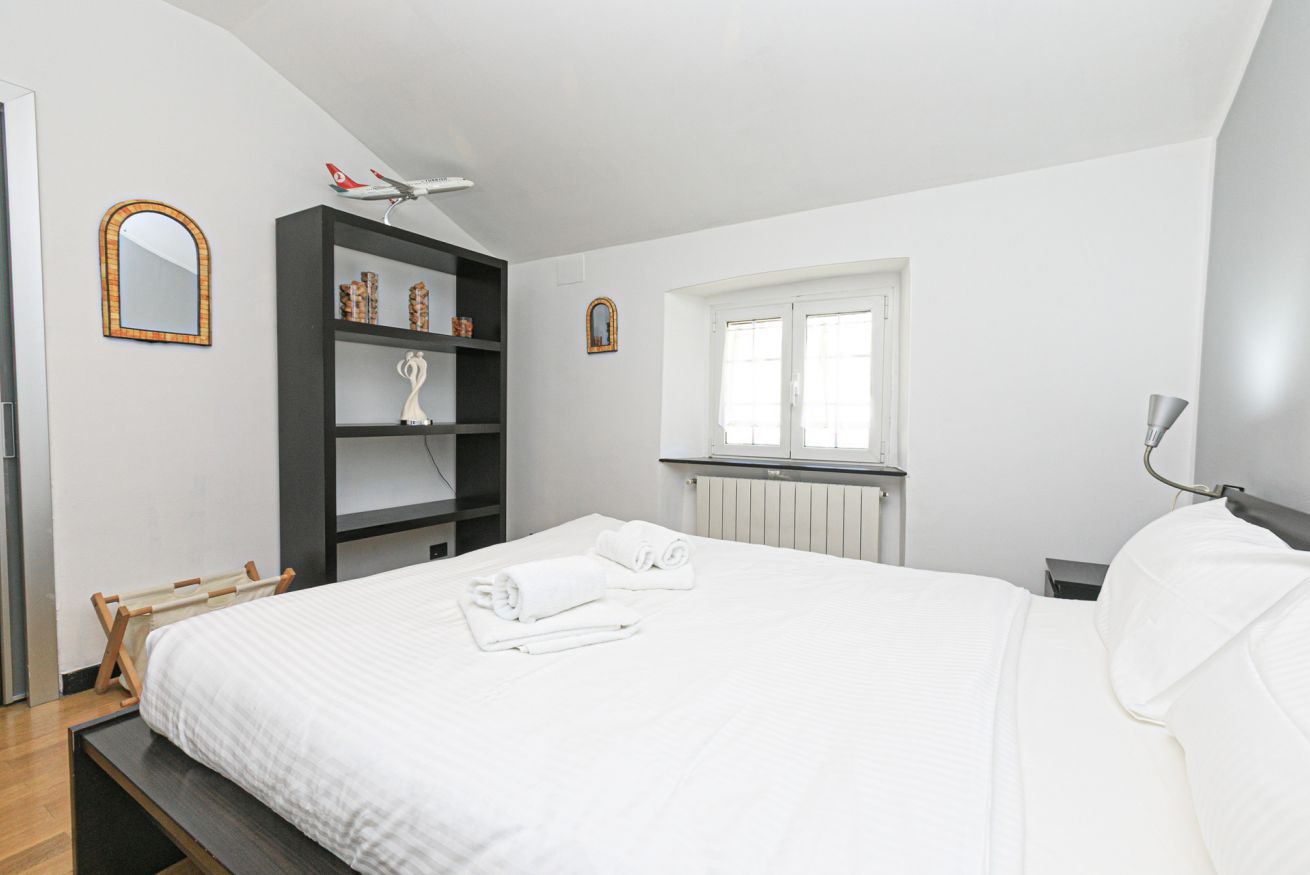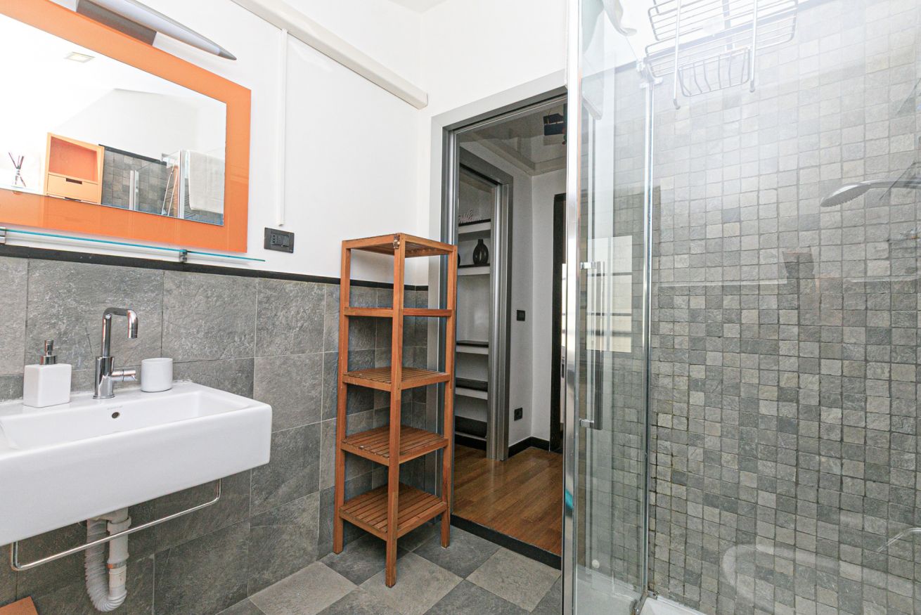 L'alloggio, recentemente ristrutturato, si compone di un luminosissimo soggiorno con divano letto e angolo cottura, una moderna camera con letto matrimoniale con un'ampia cabina armadio e un bagno con doccia.