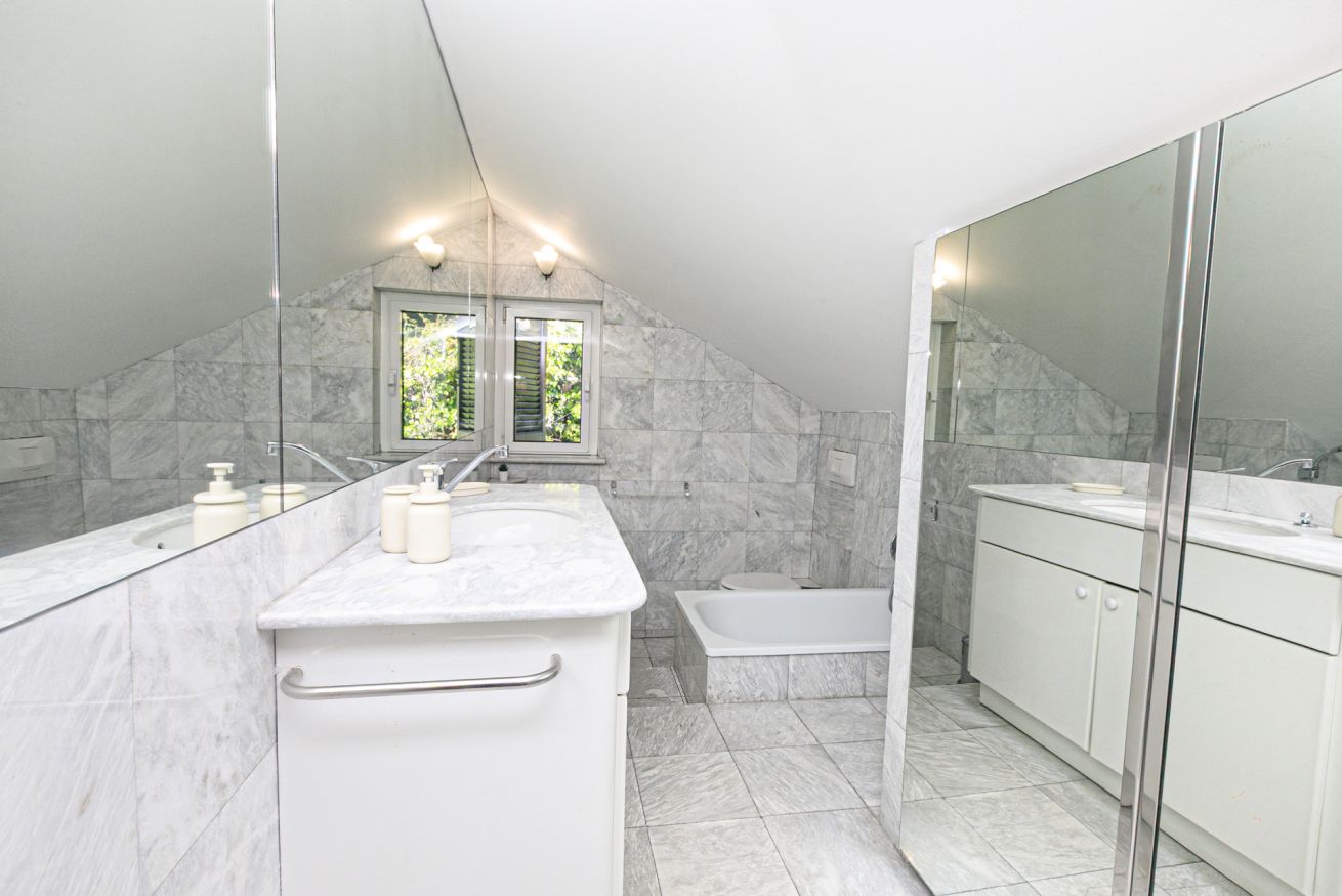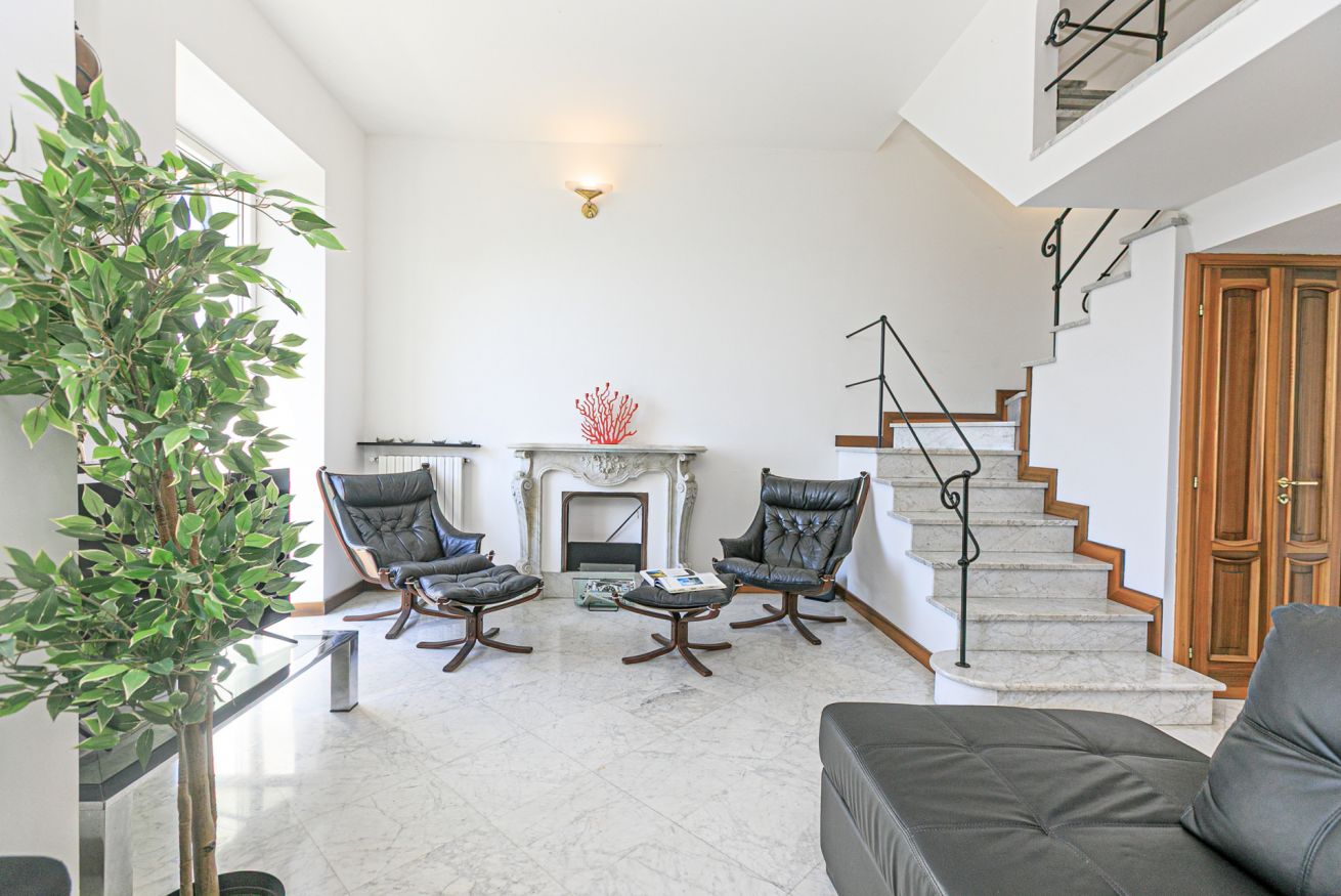 Si sviluppa su due livelli, collegati da una bellissima scala in marmo, con un piano ammezzato in cui trova posto il bagno padronale, ed è composto al primo livello da: